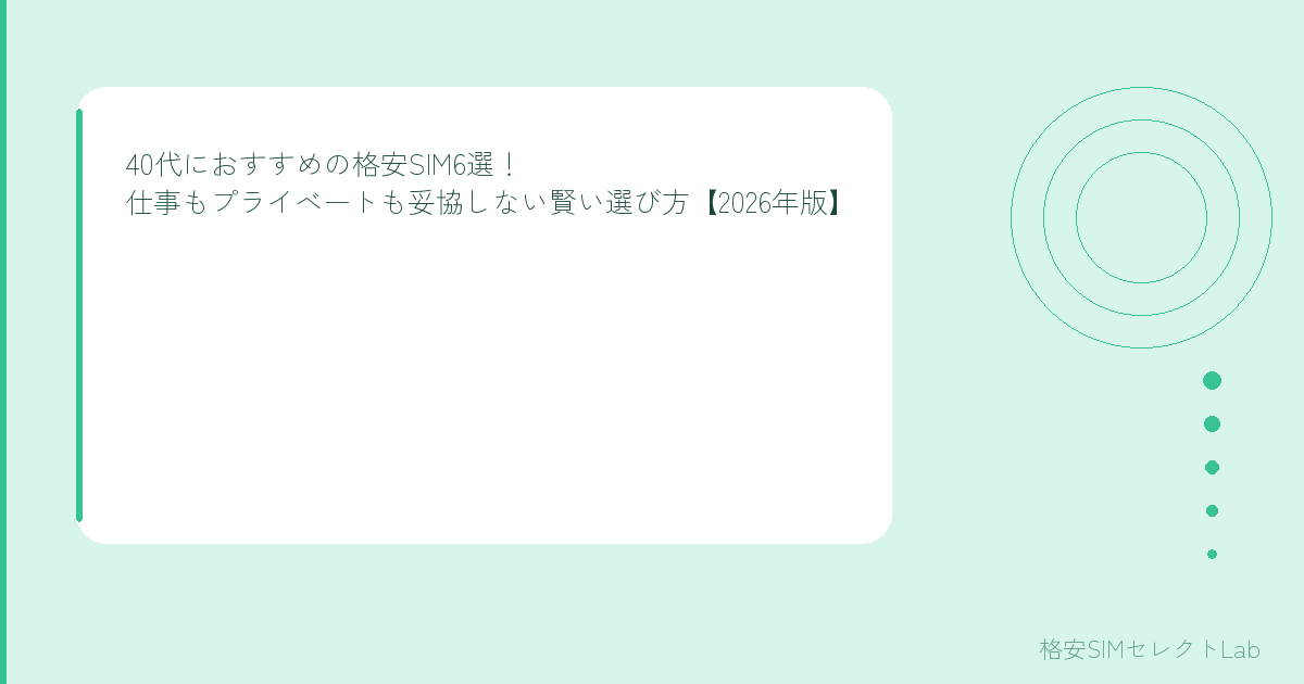40代におすすめの格安SIM6選!仕事もプライベートも妥協しない賢い選び方【2026年版】