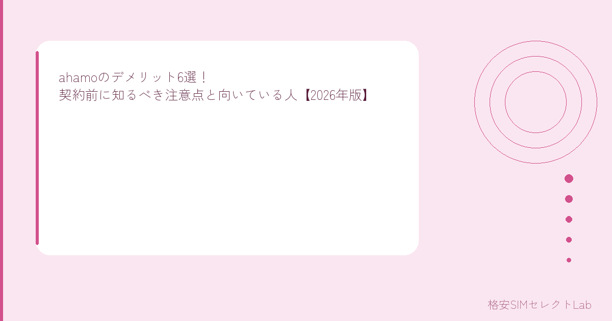 でも、万能に見えるahamoにも「人を選ぶポイント」がいくつかあるんだ。この記事では、ahamoのデメリットを6つしっかりお伝えした上で、「それでもahamoがベストな人」も紹介していくよ。