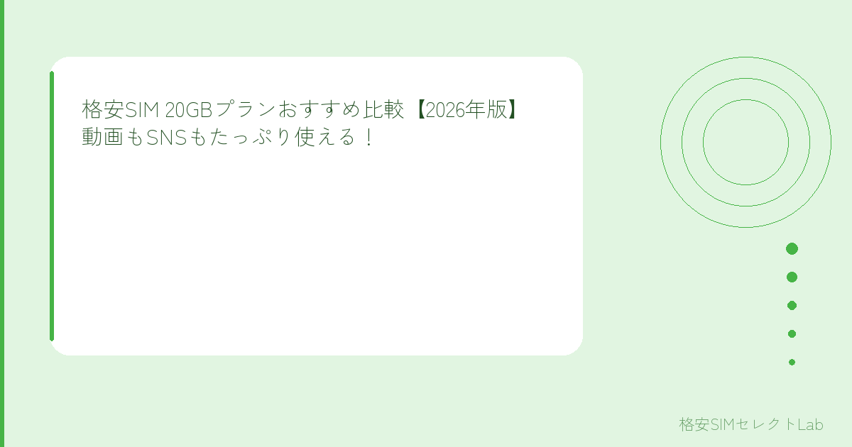 この記事では、2026年最新の20GBプランを徹底比較。料金だけでなく通信速度や付帯サービスまで含めて、本当におすすめの格安SIMを紹介していくね。