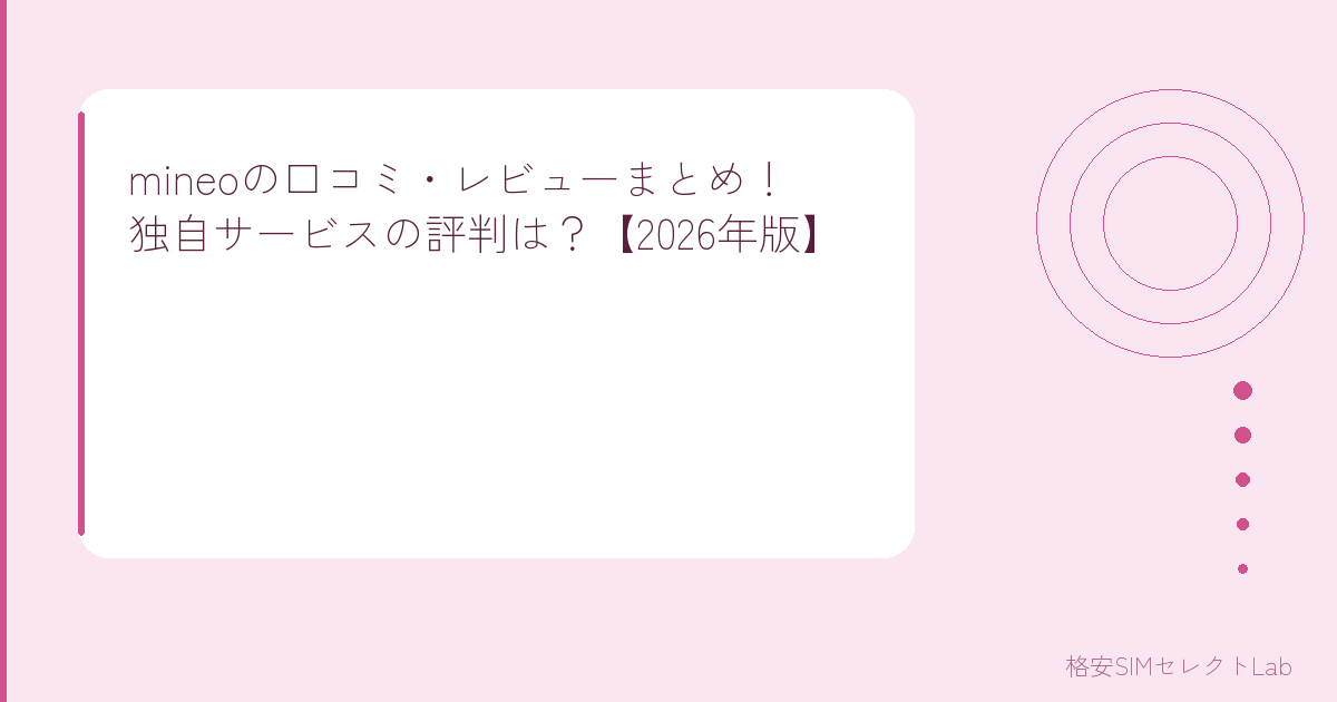 僕が格安SIM歴7年、15社以上乗り換えてきた中で、mineoは「数字だけじゃ測れない面白さがある」と感じたサービス。この記事では、2026年最新のmineoユーザーの口コミ・レビューを集めて、良い評判も悪い評判もリアルにお伝えしていくよ。