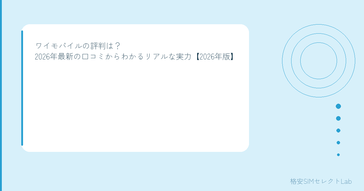 この記事では、2026年最新のワイモバイルユーザーの口コミを集めて、リアルな評判を徹底的にまとめたよ。数字で見ると意外な発見もあるから、乗り換えを検討している人はぜひ最後まで読んでみて。